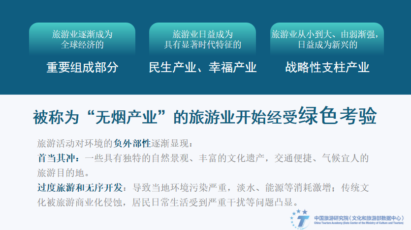 Since the mid-20th century, the global economy has gradually recovered and grown rapidly, industrialization and urbanization have gradually accelerated, the improvement of infrastructure and tourism facilities such as transportation, communications, and payment, and the rise of mass consumer culture have provided more convenience for tourism. The globalization of the tourism industry has accelerated and gradually become an important part of the global economy. Since the reform and opening up, especially since the 18th National Congress of the Communist Party of China, my country's tourism development has entered the fast lane. The tourism industry has grown from small to large and from weak to strong. It has increasingly become an emerging strategic pillar industry and a livelihood industry and happiness industry with significant characteristics of the times. The tourism industry is often regarded as a "smokeless industry" and "invisible trade". However, due to the fragmentation of the tourism industry value chain, excessive tourism and disorderly development have left deep environmental footprints, such as serious environmental pollution, a surge in energy consumption, the erosion of traditional culture by tourism commercialization, and the disruption of residents' daily lives.