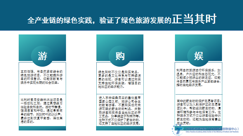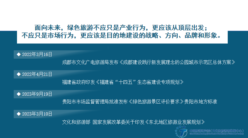 Looking to the future, green tourism should not only be an industrial behavior, but also start from the top level; it should not only be a market behavior, but also the strategy, direction, brand and image of destination construction. The "Overall Plan for Chengdu to Build a Park City Demonstration Zone to Practice the New Development Concept", "Green Tourism Scenic Area Evaluation Requirements", Guiyang Local Standards, and "Northeast Tourism Development Plan" have been launched one after another, all of which are guided by the green tourism development concept, explore new models for tourism development, and practice the unity of ecological protection, green development and tourism development.