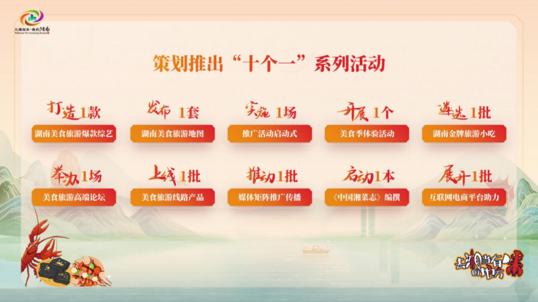 今后,我们将坚持“夯实基础、持续发力、创意引领、深耕细作”的工作导向,立足“以旅游推广美食,以美食支撑旅游,以美食旅游引导和扩大文旅消费”的开展思路,进一步发挥此次美食推广活动形成的“长尾效应”,不断凝聚各方合力、深挖市场潜力、全面综合发力,持续把“去‘湘’当有味的地方”品牌擦亮做强。一是产品再提质。以文化赋能提升湖南旅游美食的产品调性和附加价值,指导市场主体研发推出文旅、餐饮融合开展的新菜品、新样式,提升湘菜的业态形象。二是品牌再提升。用好湖南媒体传播和创新创意优势,深挖《去“湘”当有味的地方》IP价值,继续推出第二季节目并召开组合宣传,持续放大湖南旅游美食影响力。三是平台再拓展。丰富完善湖南美食旅游地图、《湖南旅游美食集萃》的使用功能,加快美团、抖音、支付宝等平台的二次开发,指导长沙打造洋湖水街湖南旅游美食街区,强化消费者对湘菜的体验感和忠诚度。