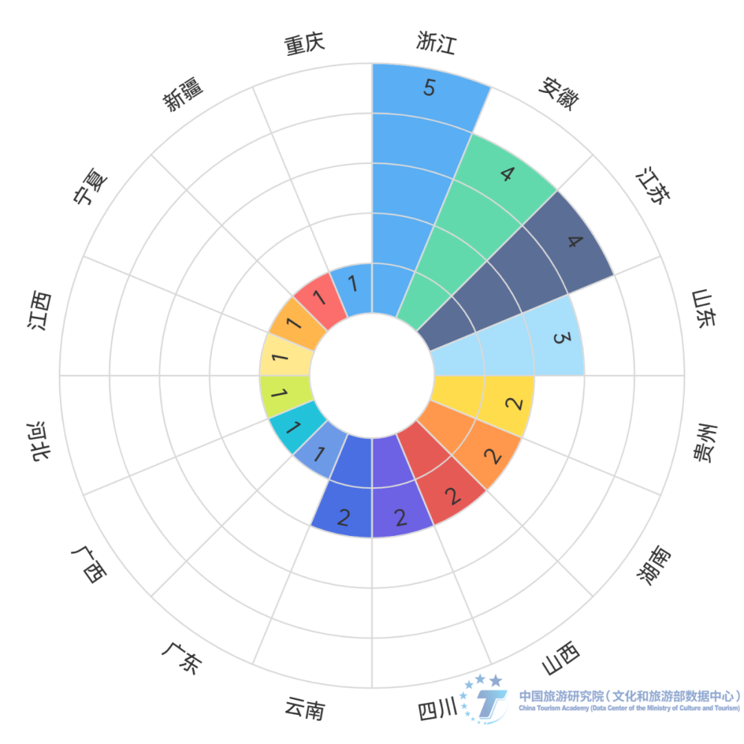 5A级古镇景区在江浙皖地区高度集聚。据统计,全国现在有33个5A级古镇景区。从其空间分布来看,浙江省以西塘古镇、乌镇景区、南浔古镇、廿八都古镇和台州府城5个古镇景区居各省份之首,其次是安徽省、江苏省,均有4个5A级古镇景区。浙江省、安徽省、江苏省3省份5A级古镇景区数量占全国总量的39.4%。5A级古镇景区在江浙皖地区高度集聚。