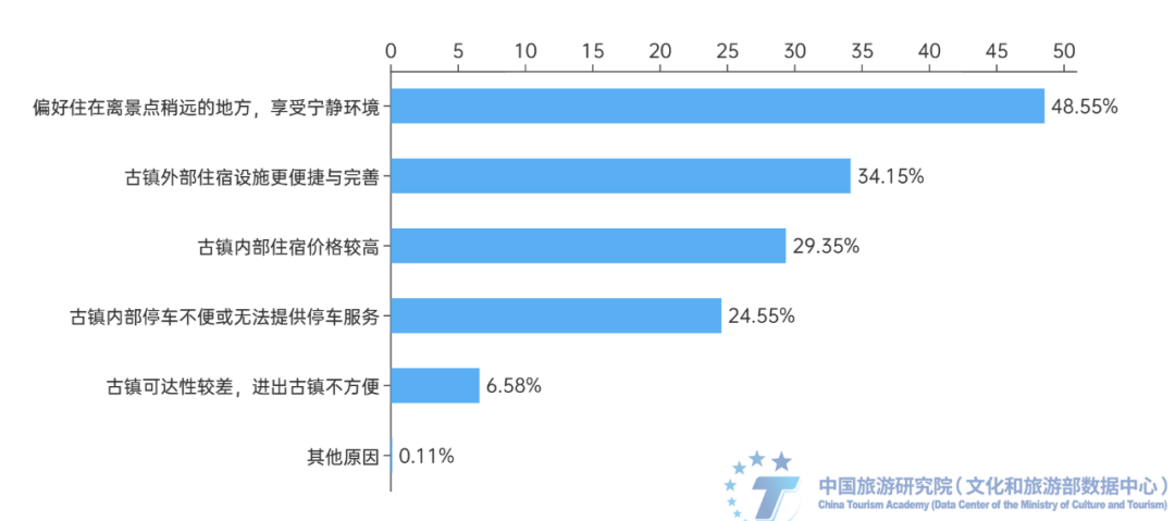 图14 选择在古镇外住宿原因及相应受访者占比图