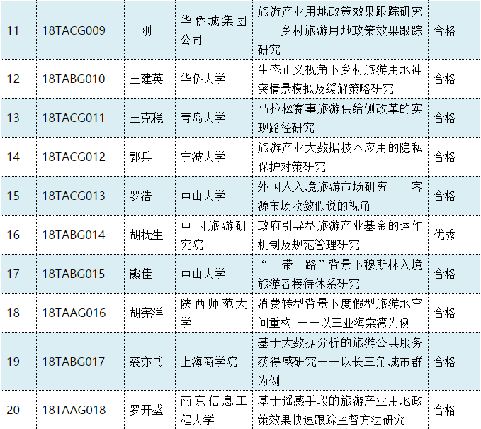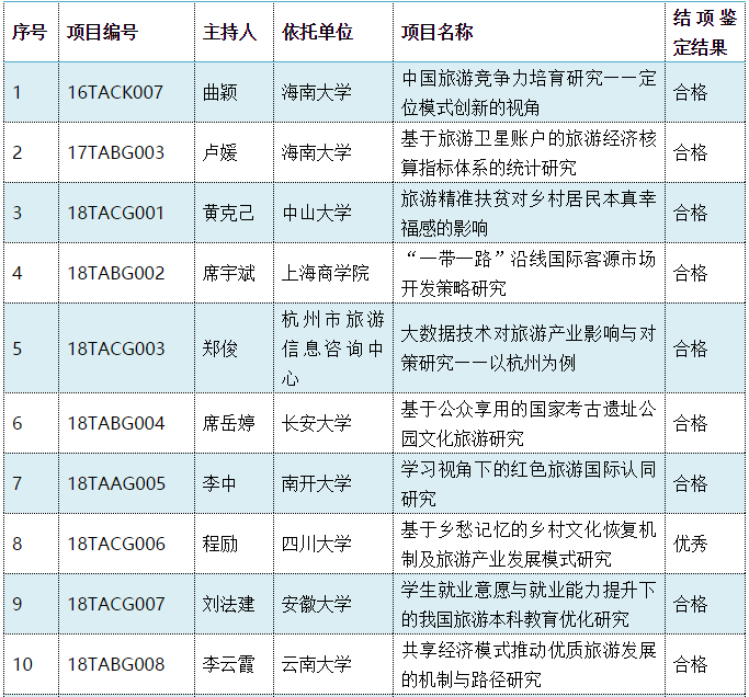 近期,文化和旅游部(旅游类)科研项目按程序完成年度结项鉴定。经鉴定,22项待结项项目均顺利获得鉴定,其中2项为优秀。具体结果如下: